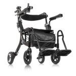 Rollator in acciaio verniciato, particolarmente indicato per l’uso esterno, è dotato di 4 ruote in PU, 2 anteriori piroettanti e 2 posteriori fisse.