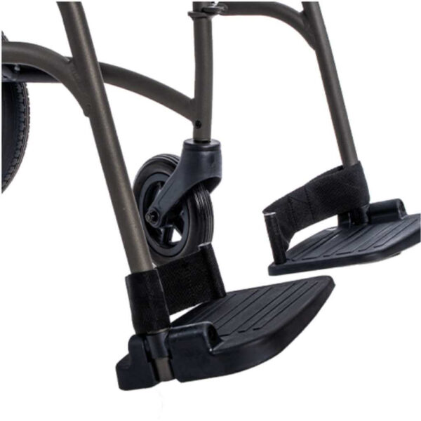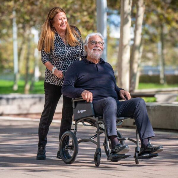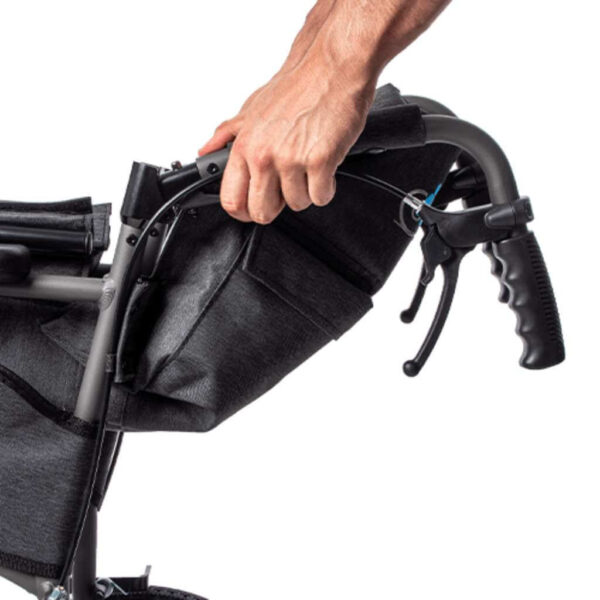 Il design con schienale pieghevole e piegatura a libro consente di ottenere un profilo molto compatto, ideale per la sistemazione nel bagagliaio dell’auto o in spazi limitati. I kit freni di serie, i poggiapiedi regolabili e rimovibili e i braccioli fissi con rivestimento in tessuto completano una configurazione equilibrata tra comfort, sicurezza e semplicità d’uso.
