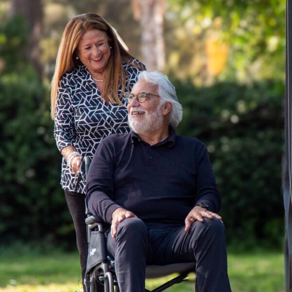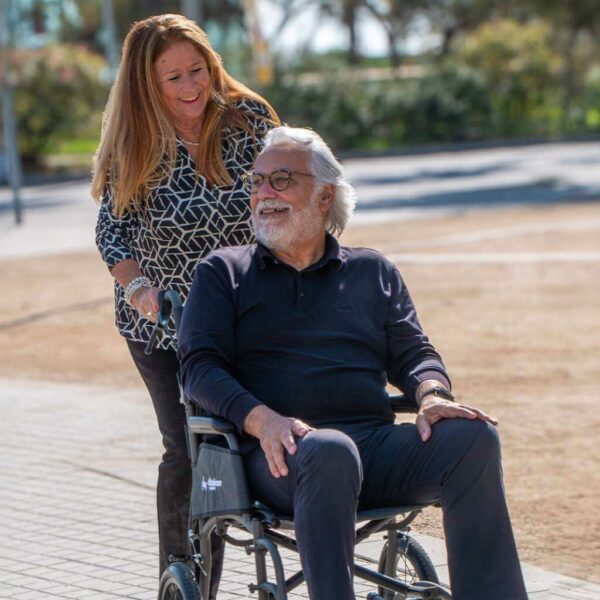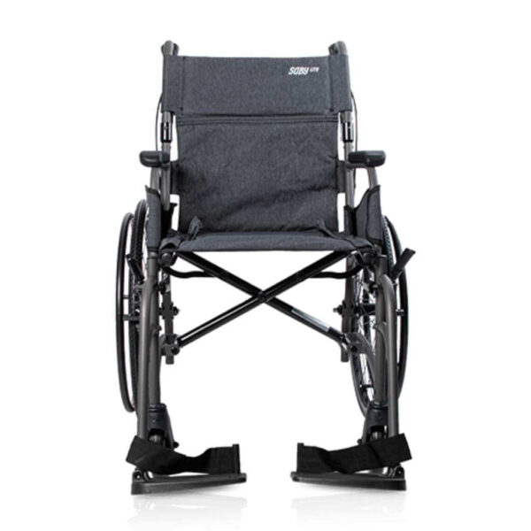 La carrozzina manuale Saby Lite è un ausilio leggero in alluminio, facile da trasportare e piegare, con struttura resistente e configurazioni adatte sia alla spinta assistita che all’autopropulsione.