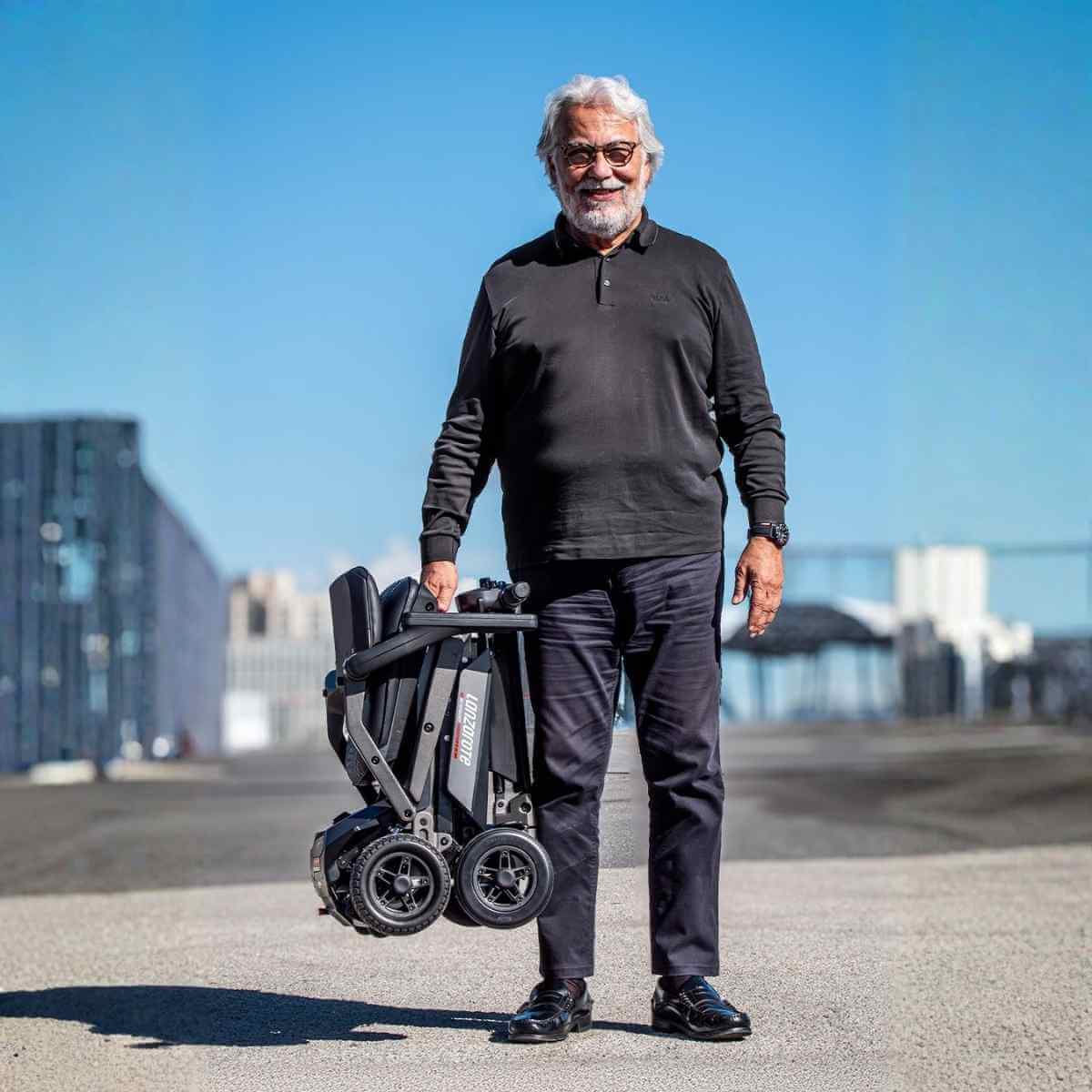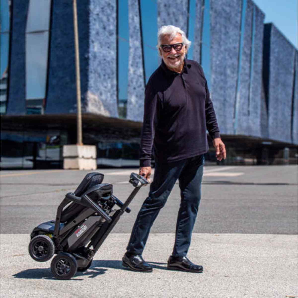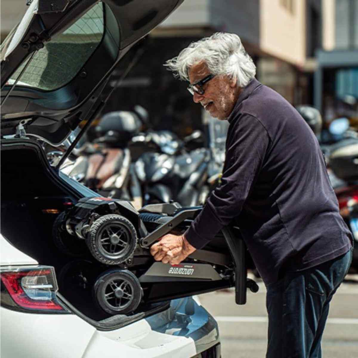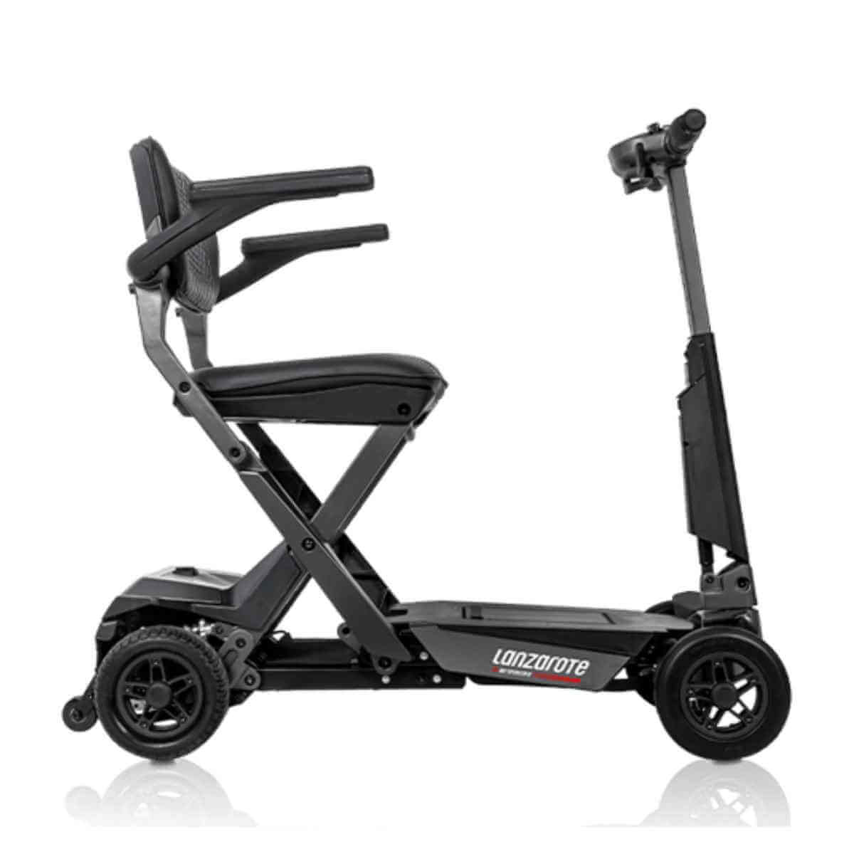 Lo Scooter Lanzarote è stato progettato per garantire autonomia senza sforzi fisici: grazie al sistema di chiusura elettronica automatica, puoi aprirlo e chiuderlo senza doverti mai chinare. Si distingue per le sue dimensioni ultracompatte e la facilità di trasporto. Con una profondità di soli 98 cm, il Lanzarote è uno degli scooter più corti della sua categoria, ideale per entrare nei più piccoli ascensori e manovrare agilmente in spazi ristretti. La sua struttura in alluminio garantisce leggerezza e resistenza, sopportando un carico fino a 125 kg.