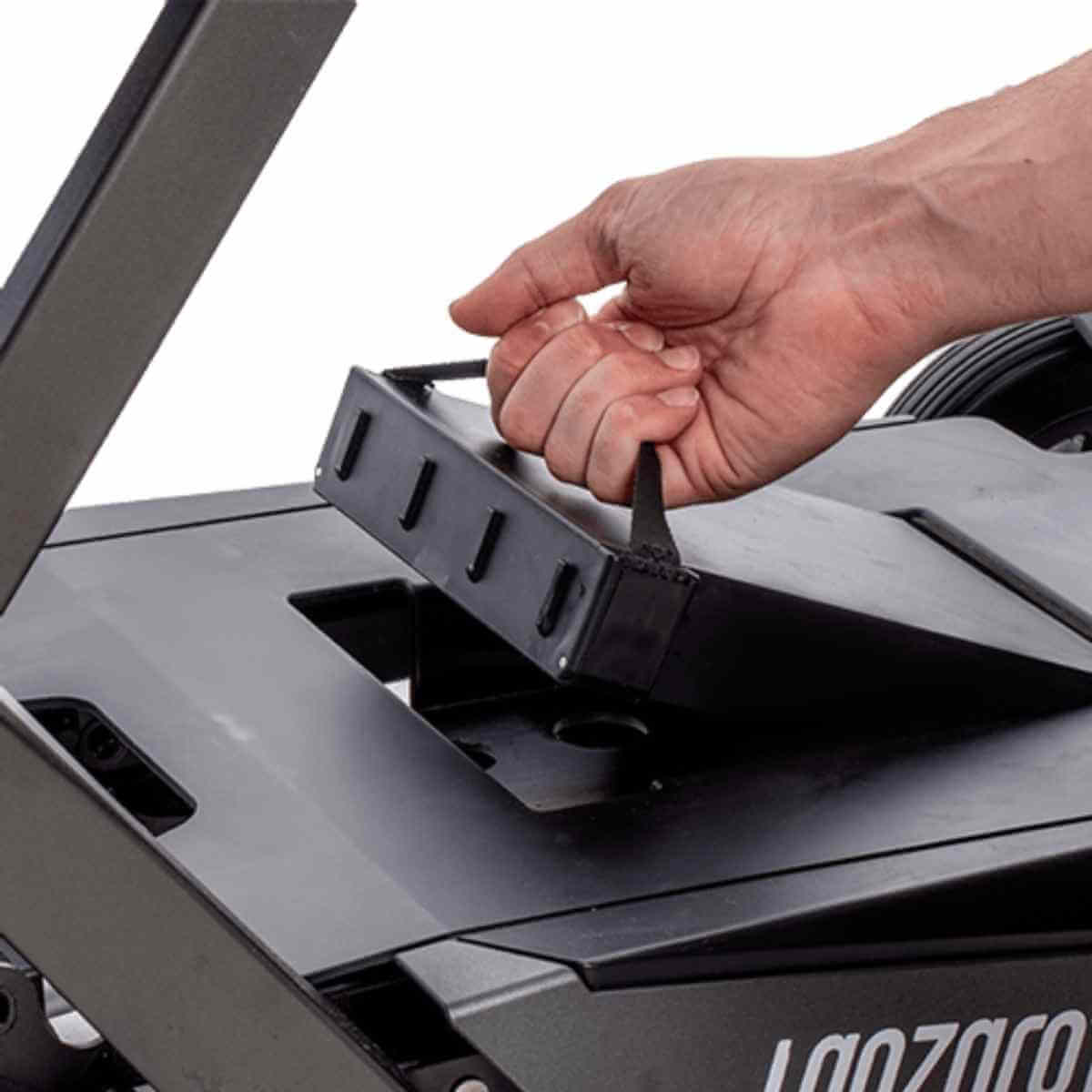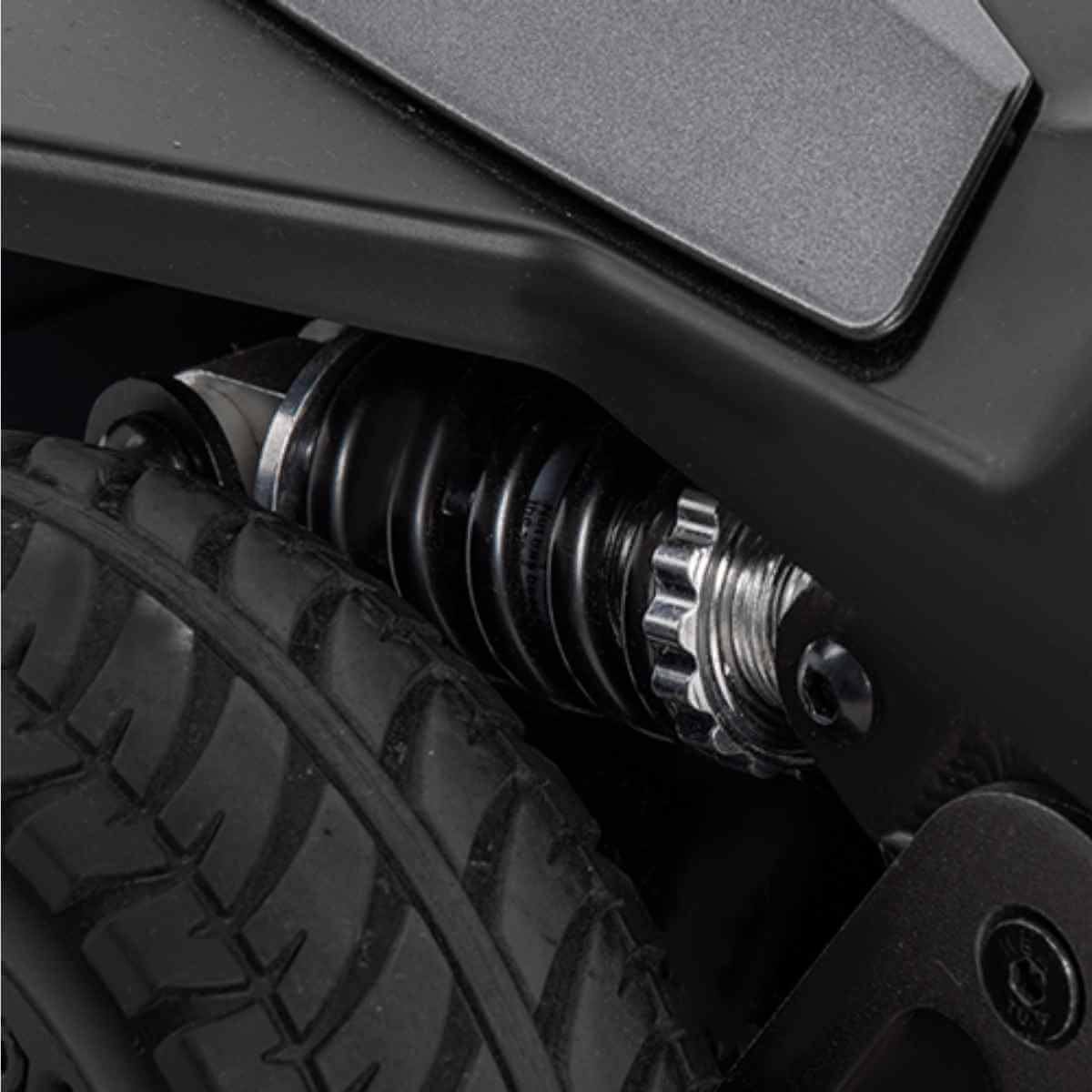 Nonostante le dimensioni ridotte, il comfort è garantito dagli ammortizzatori posteriori che assorbono le asperità del terreno e dalle ruote solide antiforatura. Equipaggiato con una batteria al litio da 16 Ah (o 10 Ah in base alla configurazione), offre un’autonomia fino a 20 km. La batteria è facilmente estraibile per essere ricaricata ovunque, separatamente dallo scooter.