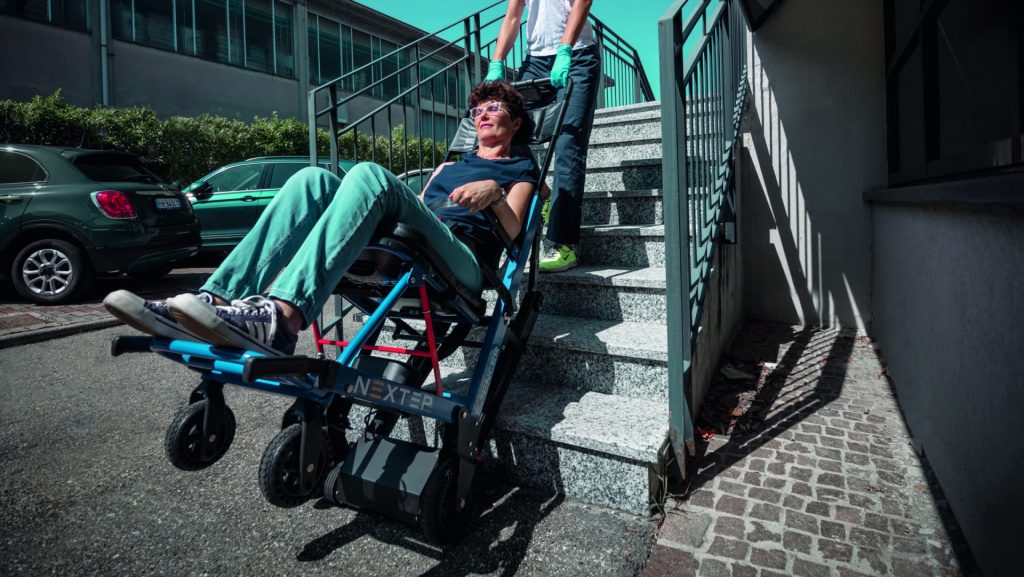 La seggiola Nextep è pensata progettata per semplificare gli spostamenti sulle scale, riducendo gli sforzi e mantenendo alti standard di sicurezza. La struttura è realizzata in lega di alluminio, un materiale leggero e resistente, che permette di ottenere dimensioni compatti e movimenti agevoli. Inoltre la struttura è progettata per essere ripiegata in modo da portare l’ausilio ovunque.
